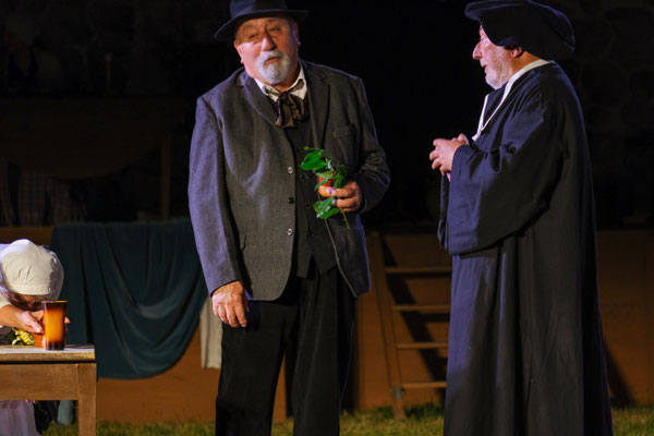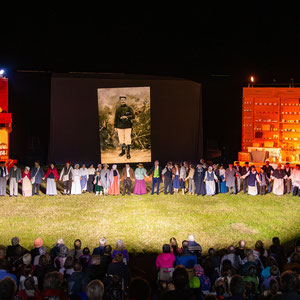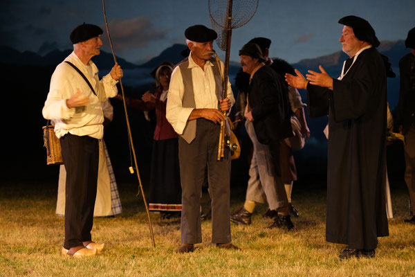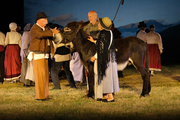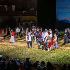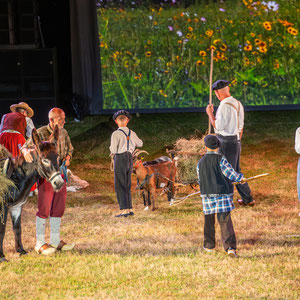Le spectacle a déjà été joué en Août 2024, devant plus de 900 spectateurs, avec 80 comédiens, la présence de groupes traditionnels, de danseurs et la participation d’animaux (ânes, chèvres, lamas).
