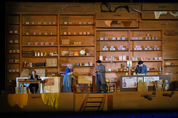 La mise en scène, réalisé par Frédéric Claude (la Guerre des Demoiselles, la Tribu de Magda, Autrefois le Couserans 2022) nous fait vivre des scènes de vie locale, et aussi en Espagne, Chili et Argentine. Le décor reconstitue la maison Faup et le magasin Souquet avec des projections sur écran de 10 x 7 mètres.